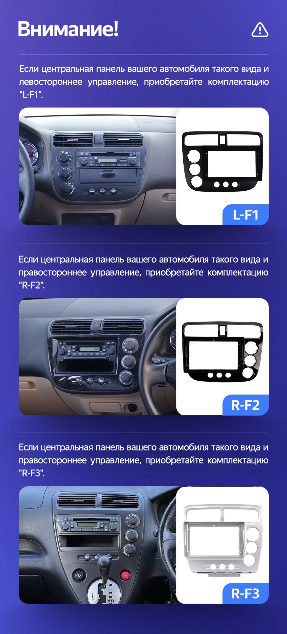 Переходная рамка Honda Civic 7 (2000-2006) F3 Правый руль (9") - купить всего за 7 000 руб. в интернет-магазине в Мурманске Teyes.com.ru. ✓ Самый лучший выбор мультимедиа ✓ Лучшая замена штатному ГУ ✓ Тел. +7 (800) 775-31-74