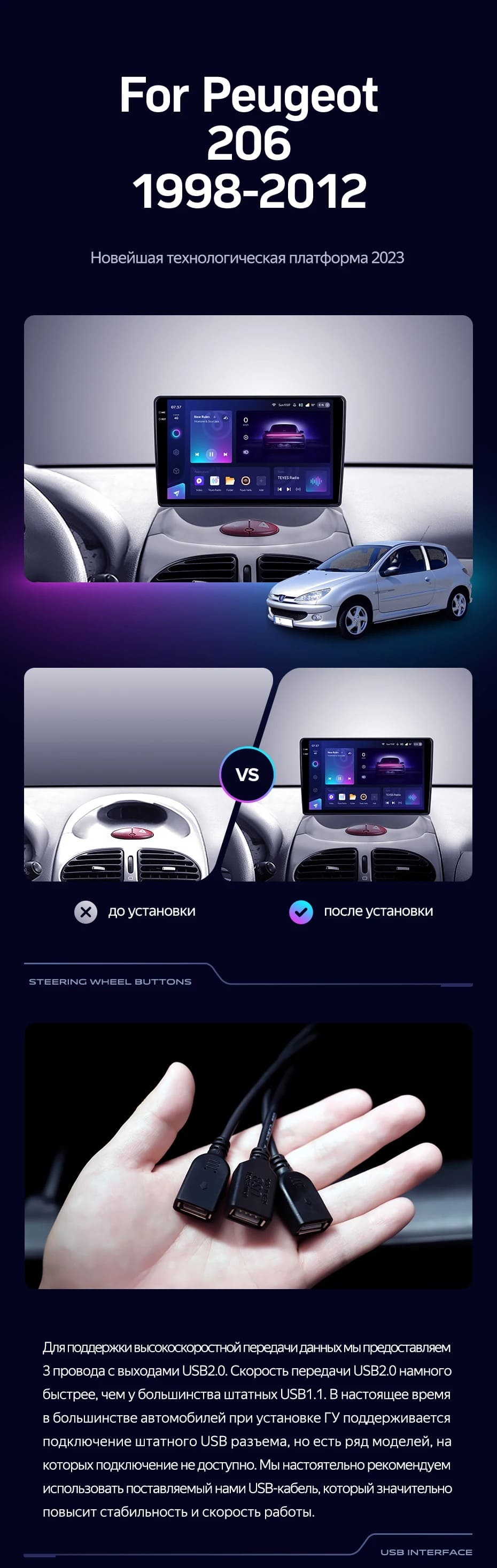 Переходная рамка Peugeot 206 T13 T16 T12 (1998-2012) (9") - купить всего за 5 600 руб. в интернет-магазине в Мурманске Teyes.com.ru. ✓ Самый лучший выбор мультимедиа ✓ Лучшая замена штатному ГУ ✓ Тел. +7 (800) 775-31-74