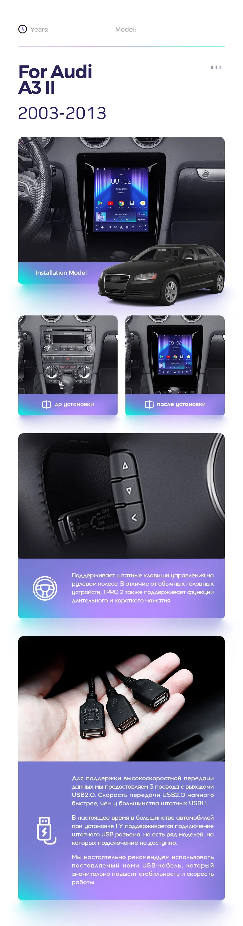 Штатная магнитола Tesla style Teyes TPRO 2 4/64 Audi A3 2 8P (2003-2013) - купить всего за 56 000 руб. в интернет-магазине в Мурманске Teyes.com.ru. ✓ Самый лучший выбор мультимедиа ✓ Лучшая замена штатному ГУ ✓ Тел. +7 (800) 775-31-74
