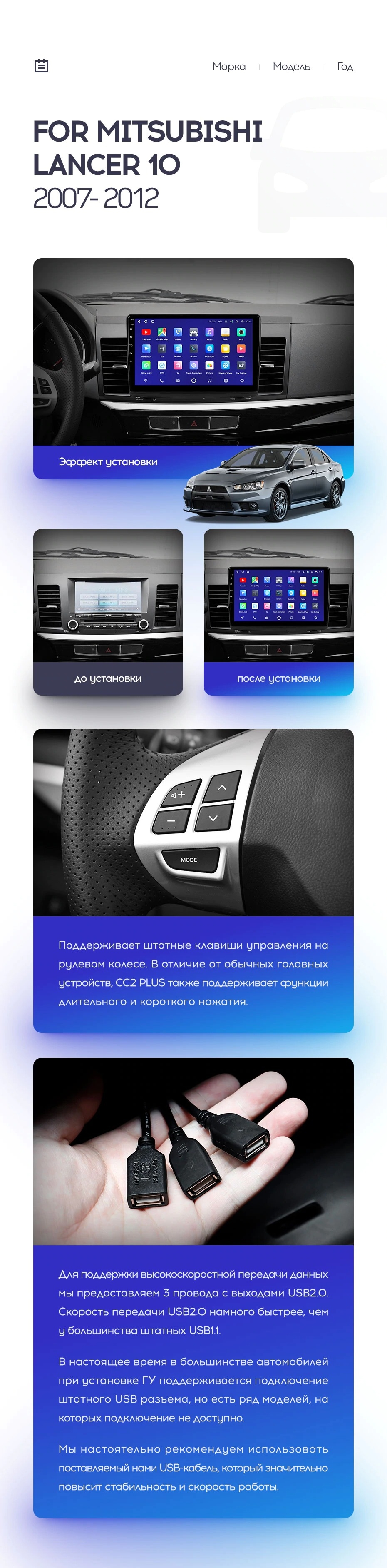 Штатная магнитола Teyes CC2 Plus 4/32 Mitsubishi Lancer 10 CY (2007-2012) Тип-A - купить всего за 33 100 руб. в интернет-магазине в Мурманске Teyes.com.ru. ✓ Самый лучший выбор мультимедиа ✓ Лучшая замена штатному ГУ ✓ Тел. +7 (800) 775-31-74