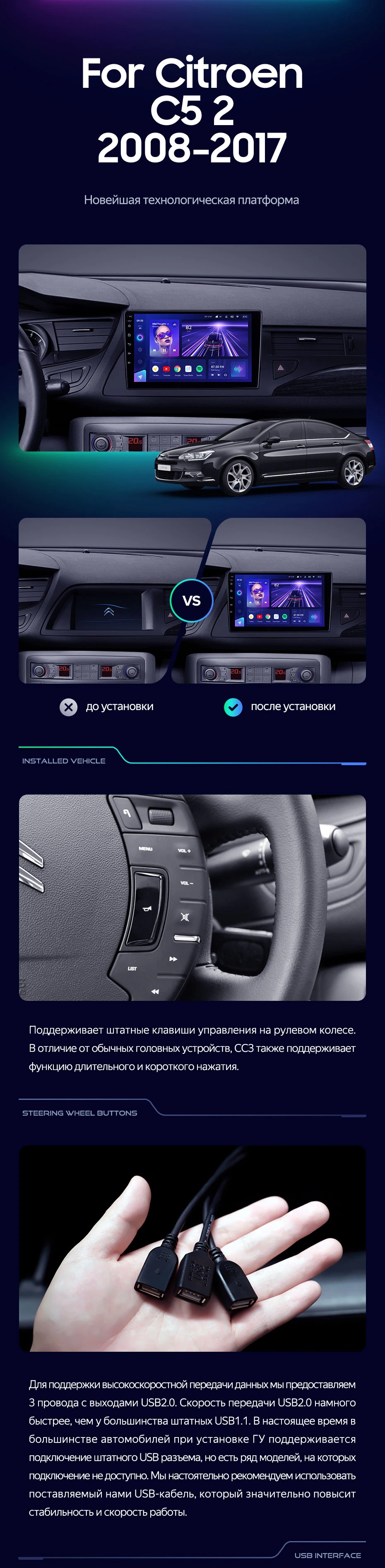 Штатная магнитола Teyes CC3 4/32 Citroen C5 2 (2008-2017) F1 - купить всего за 33 230 руб. в интернет-магазине в Мурманске Teyes.com.ru. ✓ Самый лучший выбор мультимедиа ✓ Лучшая замена штатному ГУ ✓ Тел. +7 (800) 775-31-74