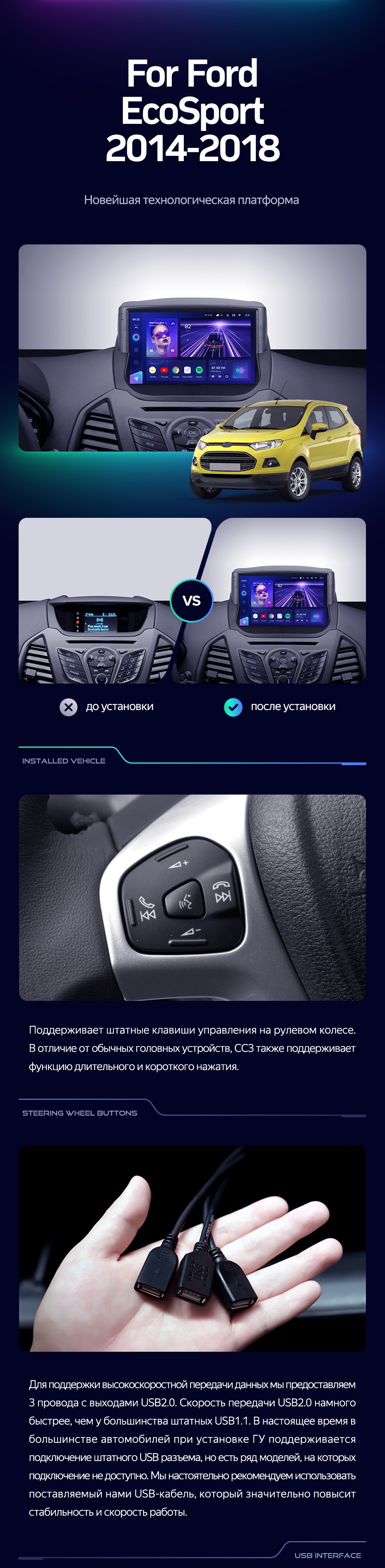 Штатная магнитола Teyes CC3 4/32 Ford EcoSport (2014-2018) F1 - купить всего за 33 530 руб. в интернет-магазине в Мурманске Teyes.com.ru. ✓ Самый лучший выбор мультимедиа ✓ Лучшая замена штатному ГУ ✓ Тел. +7 (800) 775-31-74