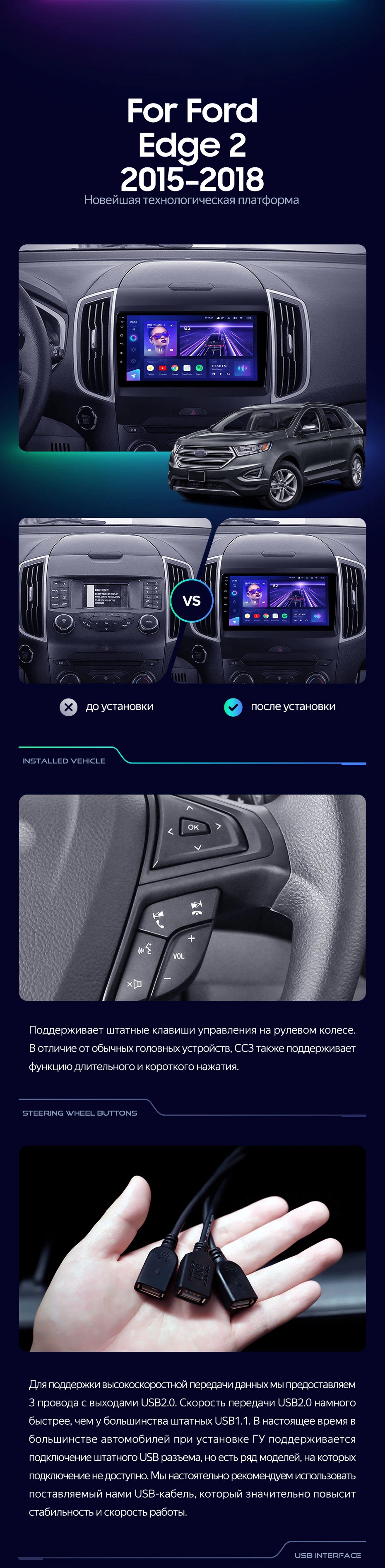 Штатная магнитола Teyes CC3 4/32 Ford Edge 2 (2015-2018) F1 - купить всего за 32 830 руб. в интернет-магазине в Мурманске Teyes.com.ru. ✓ Самый лучший выбор мультимедиа ✓ Лучшая замена штатному ГУ ✓ Тел. +7 (800) 775-31-74