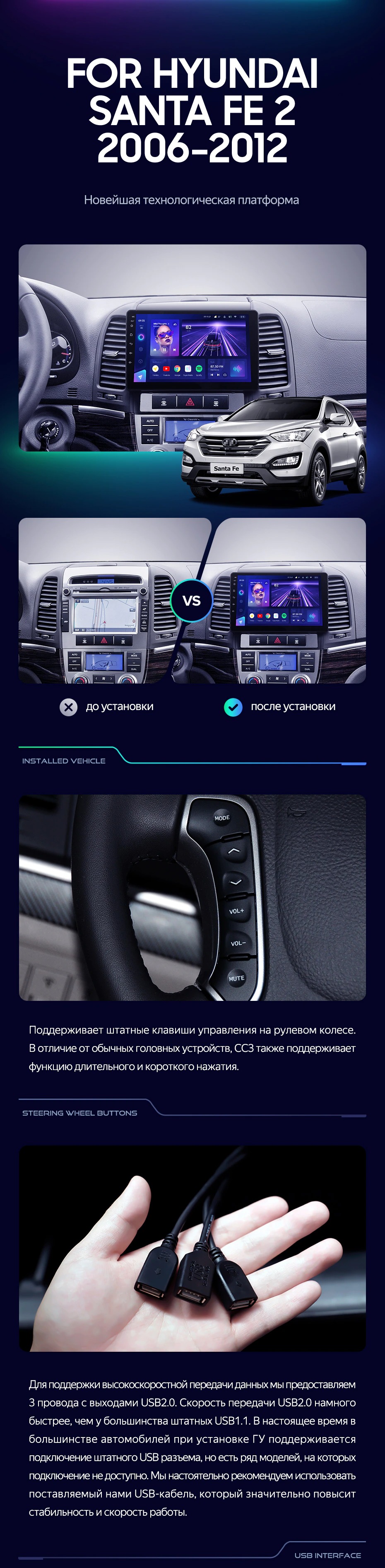 Штатная магнитола Teyes CC3 4/32 Hyundai Santa Fe 2 (2006-2012) - купить всего за 32 470 руб. в интернет-магазине в Мурманске Teyes.com.ru. ✓ Самый лучший выбор мультимедиа ✓ Лучшая замена штатному ГУ ✓ Тел. +7 (800) 775-31-74