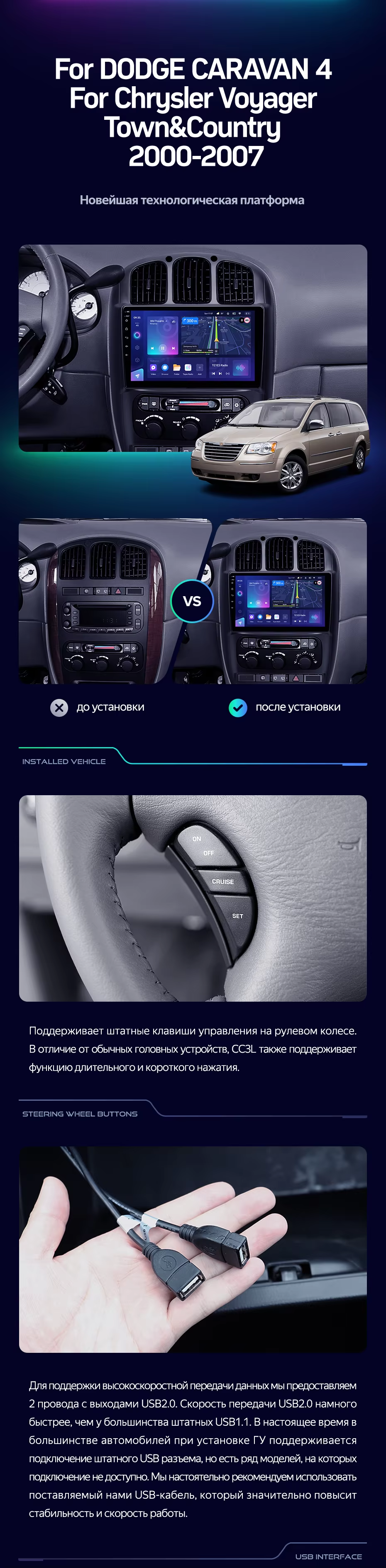 Штатная магнитола Teyes CC3L 4/32 Dodge Caravan 4 (2000-2007) Тип-B - купить всего за 30 100 руб. в интернет-магазине в Мурманске Teyes.com.ru. ✓ Самый лучший выбор мультимедиа ✓ Лучшая замена штатному ГУ ✓ Тел. +7 (800) 775-31-74