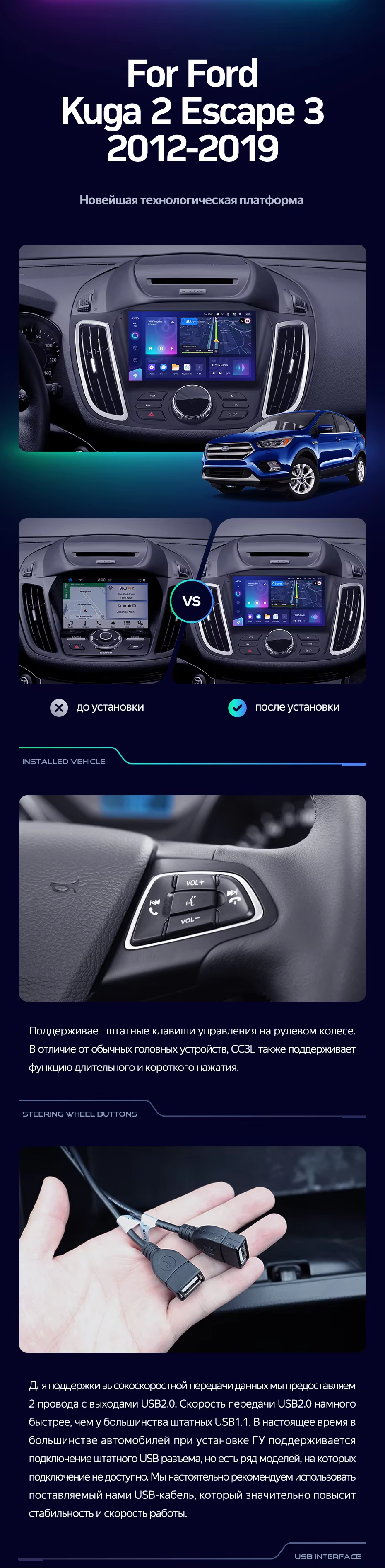 Штатная магнитола Teyes CC3L 4/32 Ford Kuga 2 (2012-2019) Тип-B - купить всего за 32 000 руб. в интернет-магазине в Мурманске Teyes.com.ru. ✓ Самый лучший выбор мультимедиа ✓ Лучшая замена штатному ГУ ✓ Тел. +7 (800) 775-31-74