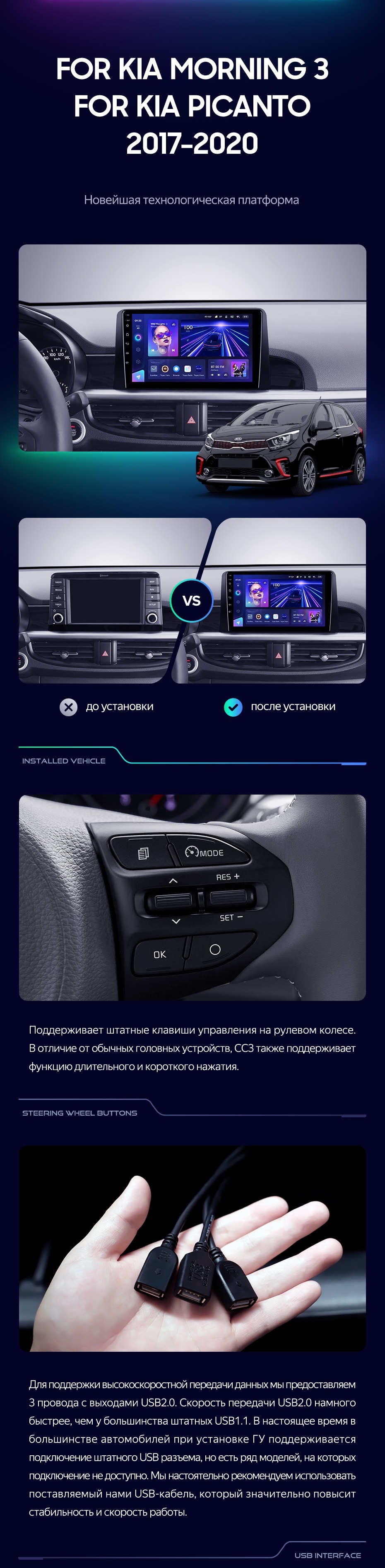 Штатная магнитола Teyes CC3L 4/32 Kia Picanto (2017-2020) Тип-A - купить всего за 28 700 руб. в интернет-магазине в Мурманске Teyes.com.ru. ✓ Самый лучший выбор мультимедиа ✓ Лучшая замена штатному ГУ ✓ Тел. +7 (800) 775-31-74