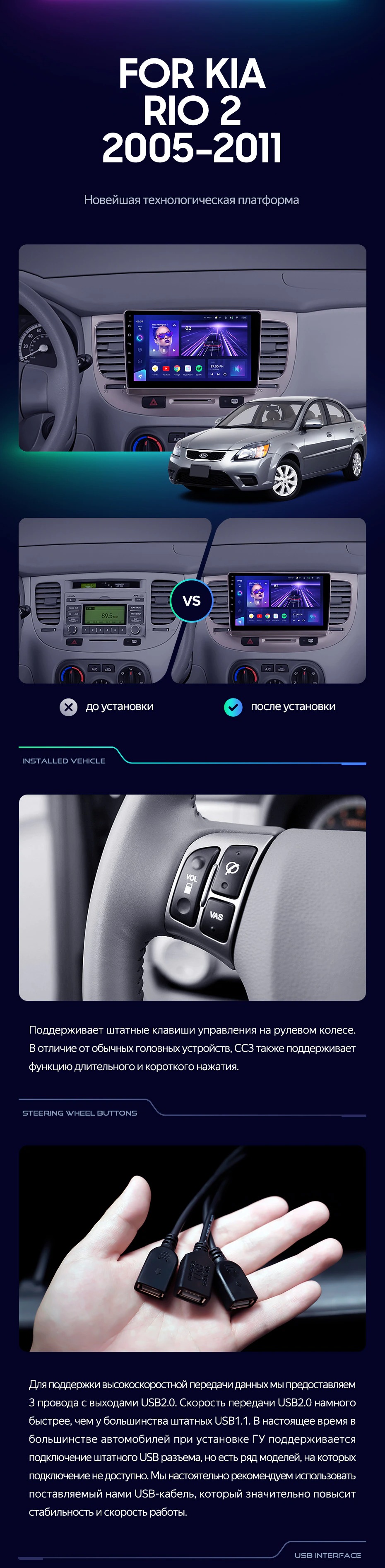 Штатная магнитола Teyes CC3L 4/32 Kia Rio 2 (2005-2011) F1 - купить всего за 28 320 руб. в интернет-магазине в Мурманске Teyes.com.ru. ✓ Самый лучший выбор мультимедиа ✓ Лучшая замена штатному ГУ ✓ Тел. +7 (800) 775-31-74
