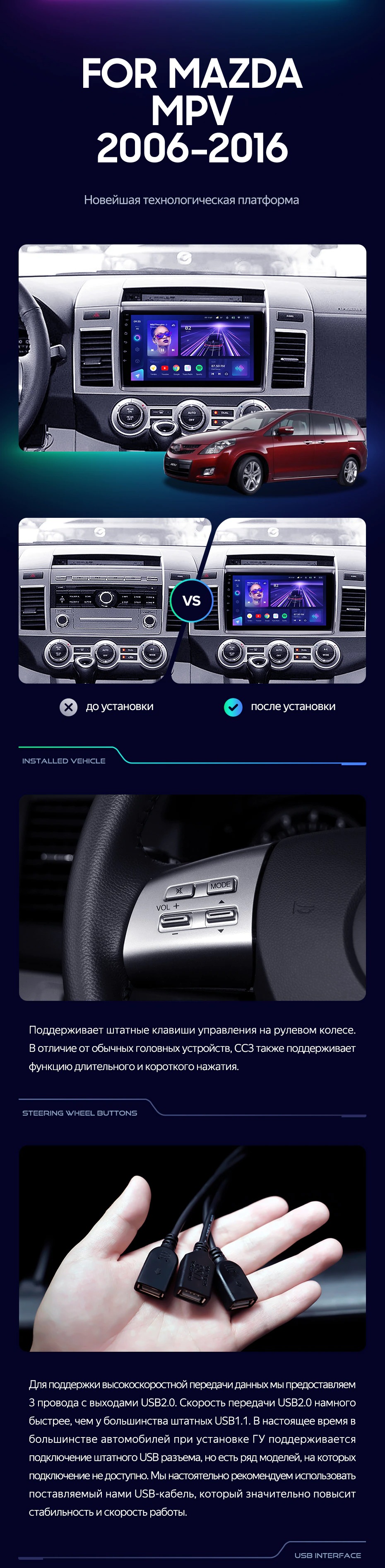 Штатная магнитола Teyes CC3L 4/32 Mazda MPV LY (2006-2016) - купить всего за 30 200 руб. в интернет-магазине в Мурманске Teyes.com.ru. ✓ Самый лучший выбор мультимедиа ✓ Лучшая замена штатному ГУ ✓ Тел. +7 (800) 775-31-74