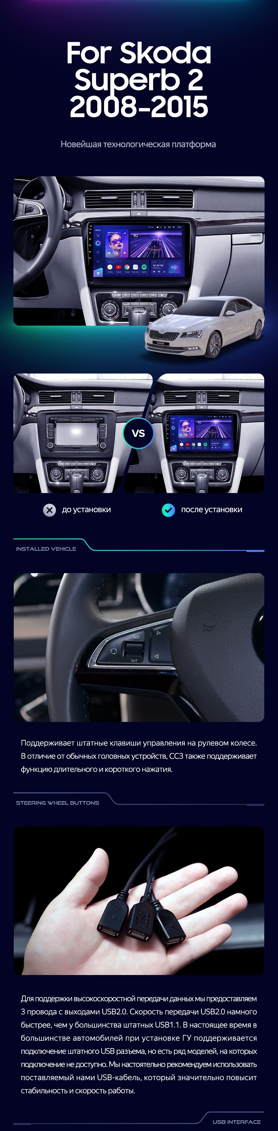 Штатная магнитола Teyes CC3L 4/32 Skoda Superb 2 B6 (2008-2015) - купить всего за 28 700 руб. в интернет-магазине в Мурманске Teyes.com.ru. ✓ Самый лучший выбор мультимедиа ✓ Лучшая замена штатному ГУ ✓ Тел. +7 (800) 775-31-74