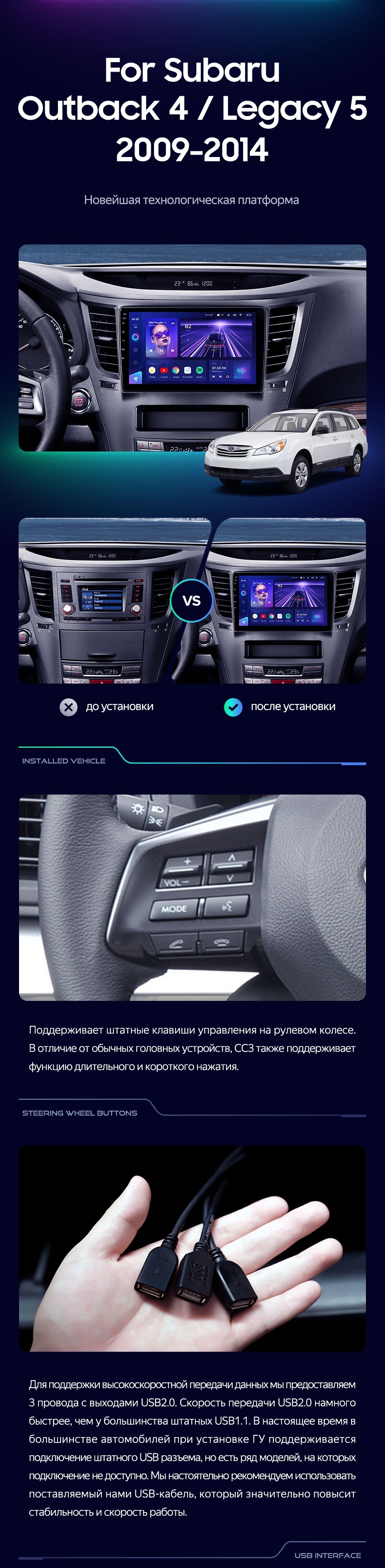 Штатная магнитола Teyes CC3L 4/32 Subaru Outback 4 (2009-2014) - купить всего за 28 400 руб. в интернет-магазине в Мурманске Teyes.com.ru. ✓ Самый лучший выбор мультимедиа ✓ Лучшая замена штатному ГУ ✓ Тел. +7 (800) 775-31-74