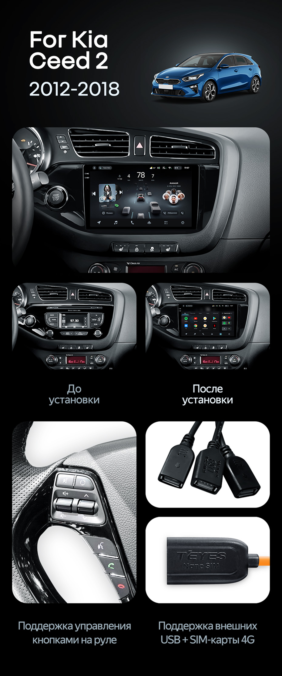 Штатная магнитола Teyes CC4 6/64 Kia Ceed 2 JD (2012-2018) - купить всего за 43 920 руб. в интернет-магазине в Мурманске Teyes.com.ru. ✓ Самый лучший выбор мультимедиа ✓ Лучшая замена штатному ГУ ✓ Тел. +7 (800) 775-31-74