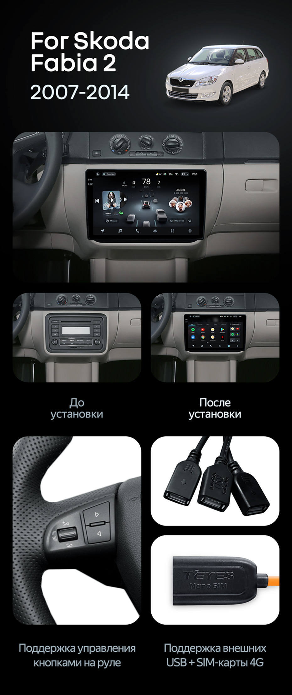 Штатная магнитола Teyes CC4 6/64 Skoda Fabia 2 (2007-2014) - купить всего за 47 800 руб. в интернет-магазине в Мурманске Teyes.com.ru. ✓ Самый лучший выбор мультимедиа ✓ Лучшая замена штатному ГУ ✓ Тел. +7 (800) 775-31-74