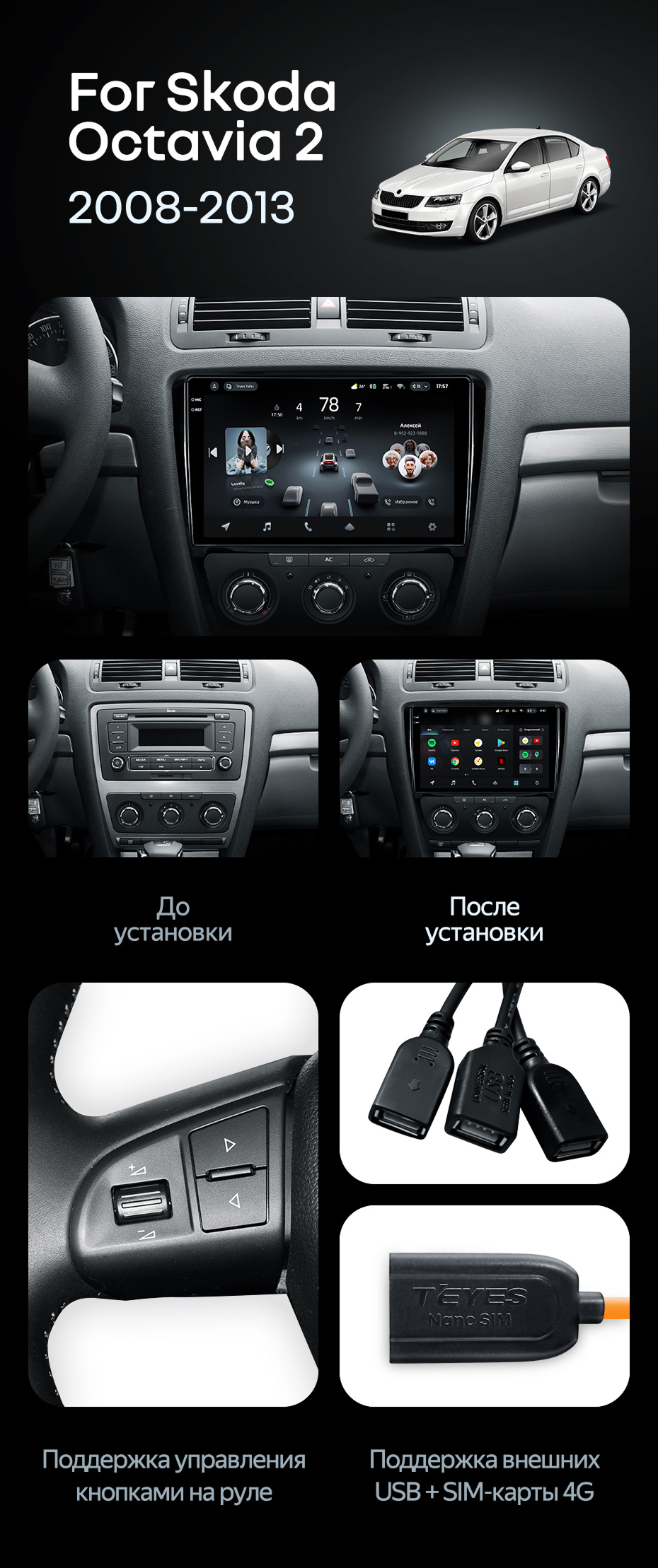 Штатная магнитола Teyes CC4 6/64 Skoda Octavia 2 A5 (2008-2013) - купить всего за 48 030 руб. в интернет-магазине в Мурманске Teyes.com.ru. ✓ Самый лучший выбор мультимедиа ✓ Лучшая замена штатному ГУ ✓ Тел. +7 (800) 775-31-74