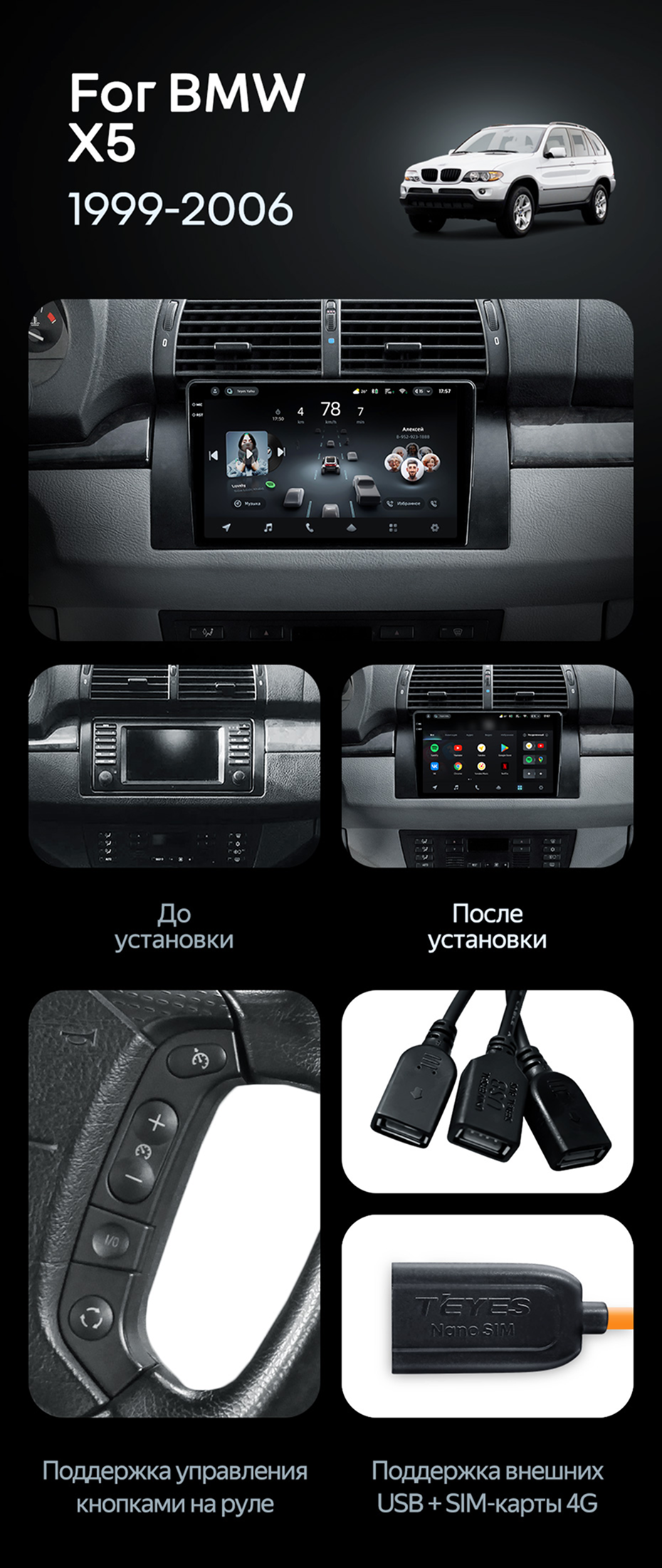 Штатная магнитола Teyes CC4 Pro 12/256 BMW X5 E39 E53 (1999-2006) - купить всего за 69 900 руб. в интернет-магазине в Мурманске Teyes.com.ru. ✓ Самый лучший выбор мультимедиа ✓ Лучшая замена штатному ГУ ✓ Тел. +7 (800) 775-31-74