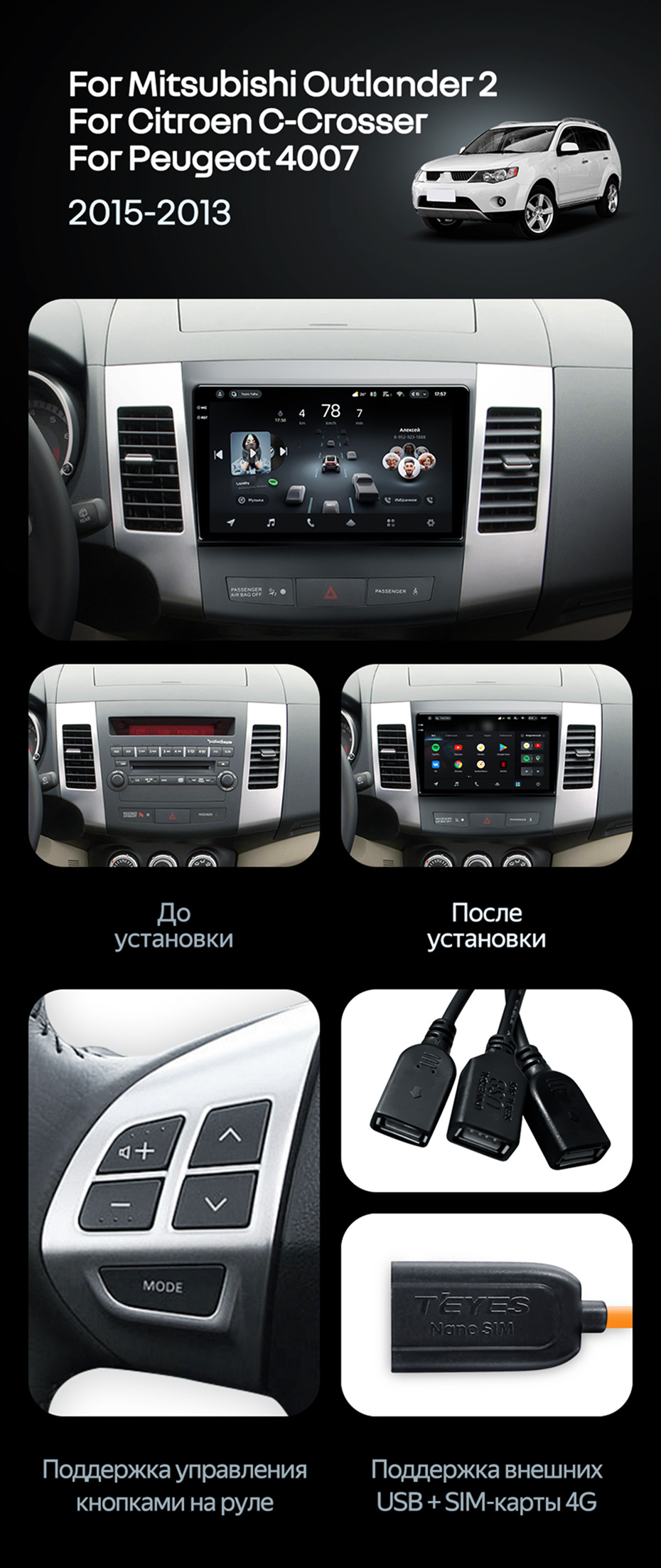 Штатная магнитола Teyes CC4 Pro 12/256 Citroen C-Crosser 1 (2007-2013) Тип-A - купить всего за 68 070 руб. в интернет-магазине в Мурманске Teyes.com.ru. ✓ Самый лучший выбор мультимедиа ✓ Лучшая замена штатному ГУ ✓ Тел. +7 (800) 775-31-74