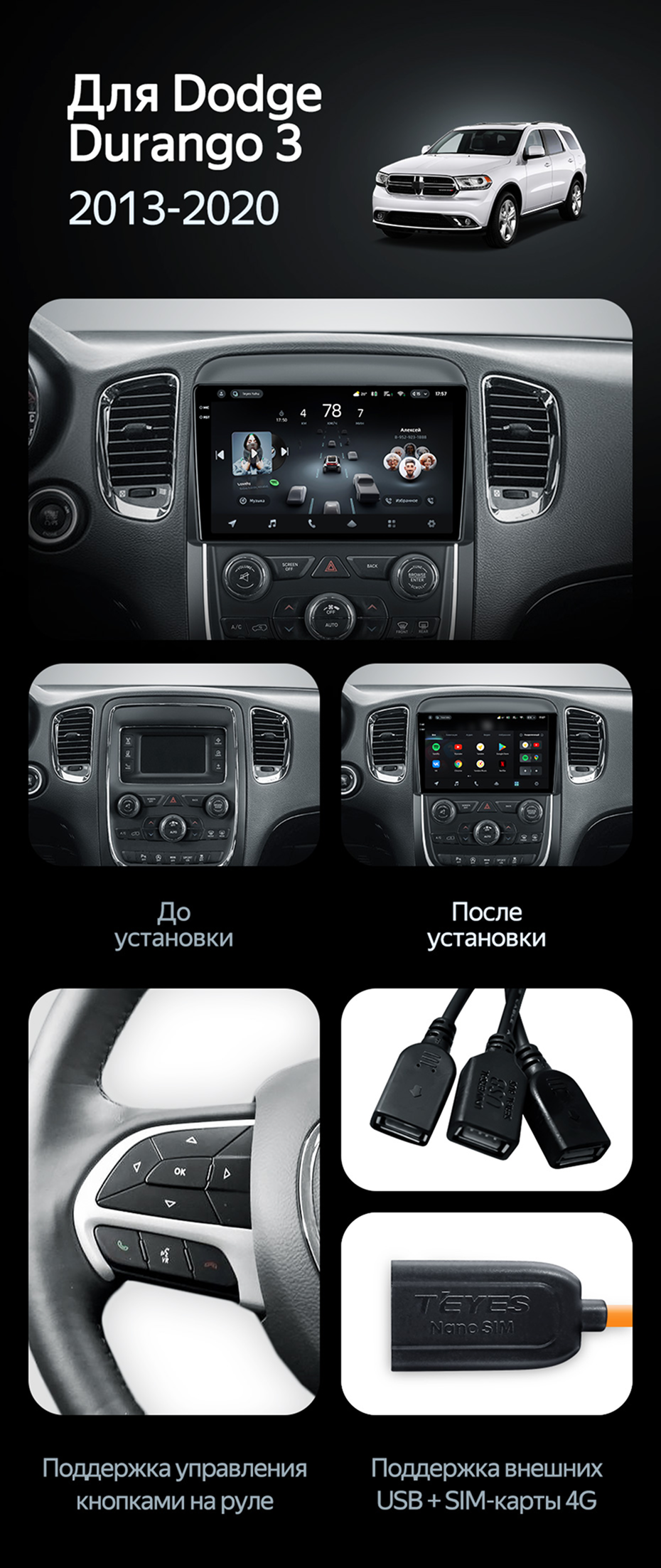 Штатная магнитола Teyes CC4 Pro 12/256 Dodge Durango 3 (2013-2020) - купить всего за 71 500 руб. в интернет-магазине в Мурманске Teyes.com.ru. ✓ Самый лучший выбор мультимедиа ✓ Лучшая замена штатному ГУ ✓ Тел. +7 (800) 775-31-74