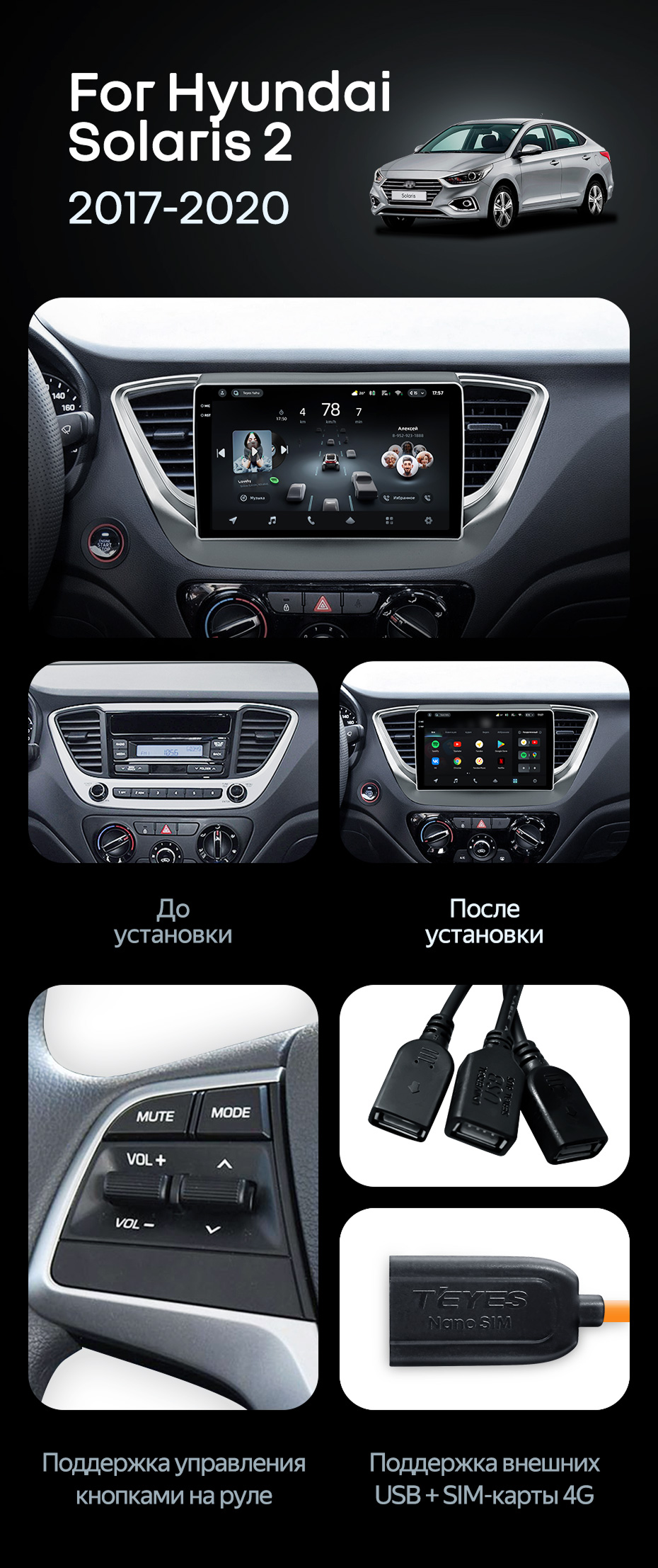 Штатная магнитола Teyes CC4 Pro 12/256 Hyundai Solaris 2 (2017-2020) F1 Тип-B - купить всего за 70 400 руб. в интернет-магазине в Мурманске Teyes.com.ru. ✓ Самый лучший выбор мультимедиа ✓ Лучшая замена штатному ГУ ✓ Тел. +7 (800) 775-31-74