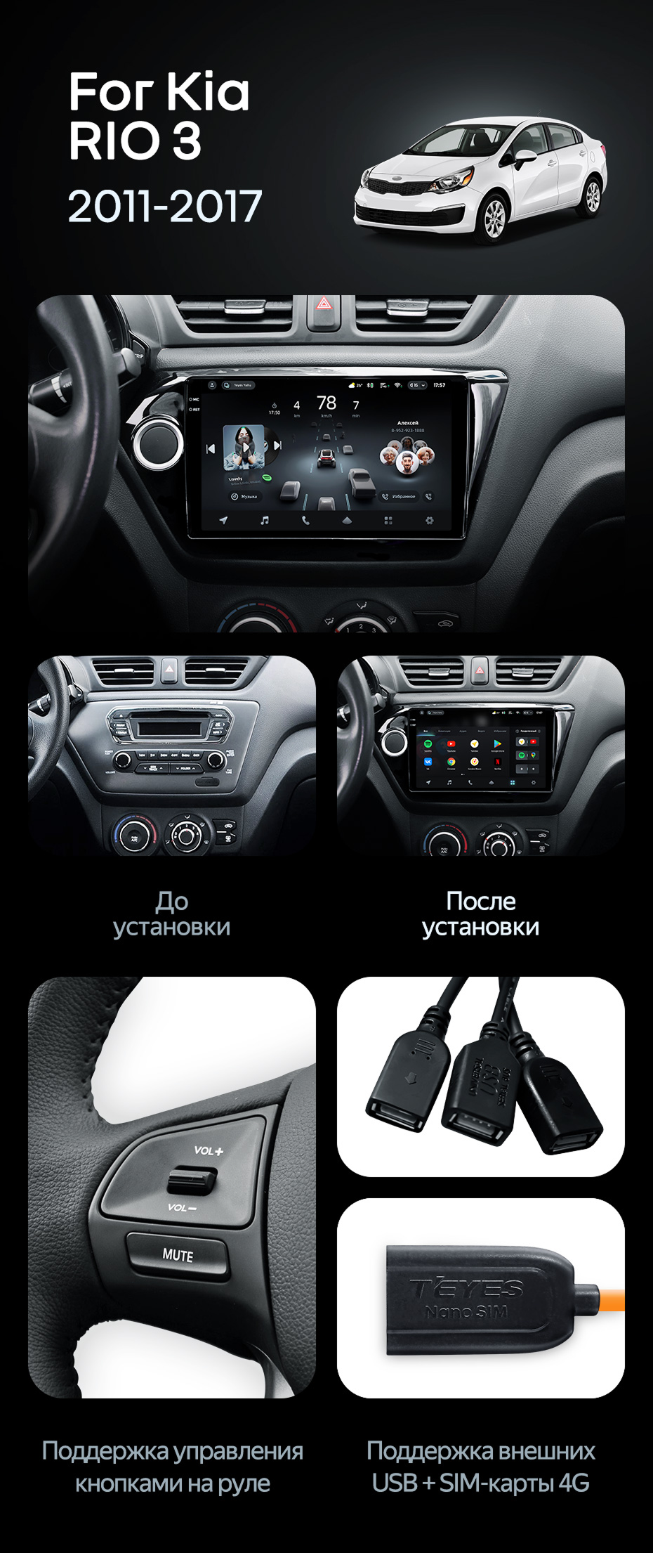 Штатная магнитола Teyes CC4 Pro 12/256 Kia Rio 3 (2011-2017) - купить всего за 68 310 руб. в интернет-магазине в Мурманске Teyes.com.ru. ✓ Самый лучший выбор мультимедиа ✓ Лучшая замена штатному ГУ ✓ Тел. +7 (800) 775-31-74