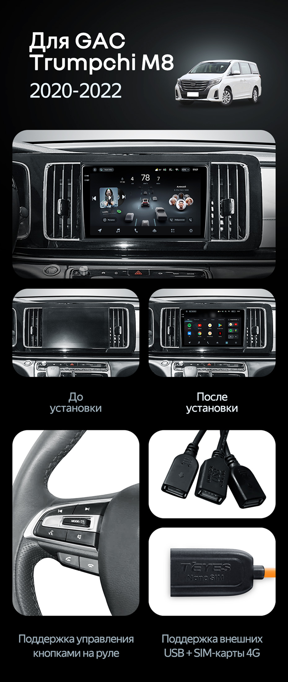 Штатная магнитола Teyes CC4 Pro 8/128 GAC Trumpchi M8 (2020-2022) - купить всего за 60 770 руб. в интернет-магазине в Мурманске Teyes.com.ru. ✓ Самый лучший выбор мультимедиа ✓ Лучшая замена штатному ГУ ✓ Тел. +7 (800) 775-31-74