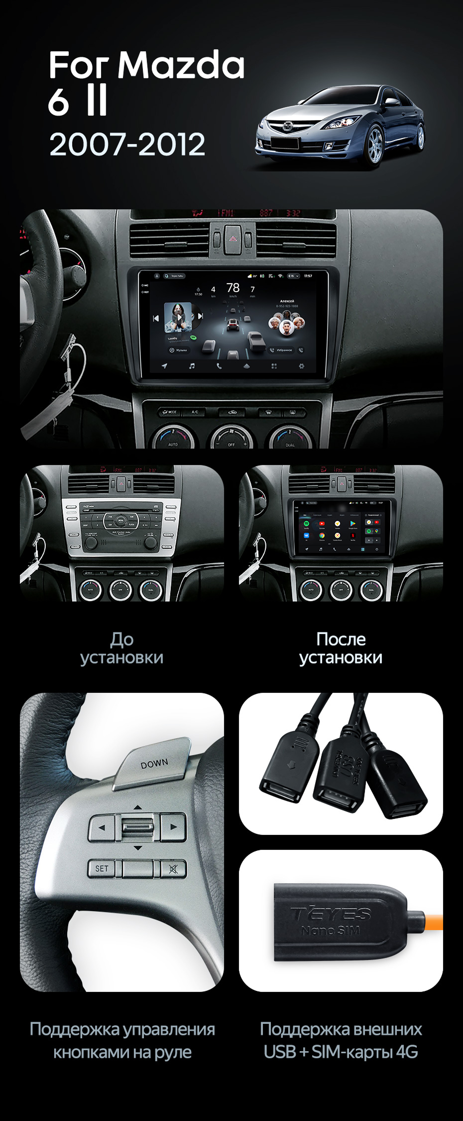 Штатная магнитола Teyes CC4 Pro 8/128 Mazda 6 2 GH (2007-2012) - купить всего за 58 380 руб. в интернет-магазине в Мурманске Teyes.com.ru. ✓ Самый лучший выбор мультимедиа ✓ Лучшая замена штатному ГУ ✓ Тел. +7 (800) 775-31-74