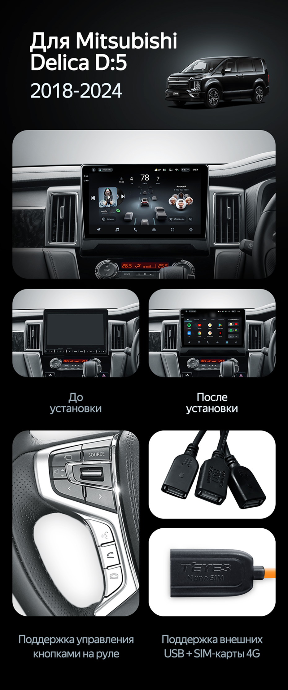 Штатная магнитола Teyes CC4 Pro 8/128 Mitsubishi Delica D:5 (2018-2024) - купить всего за 59 370 руб. в интернет-магазине в Мурманске Teyes.com.ru. ✓ Самый лучший выбор мультимедиа ✓ Лучшая замена штатному ГУ ✓ Тел. +7 (800) 775-31-74