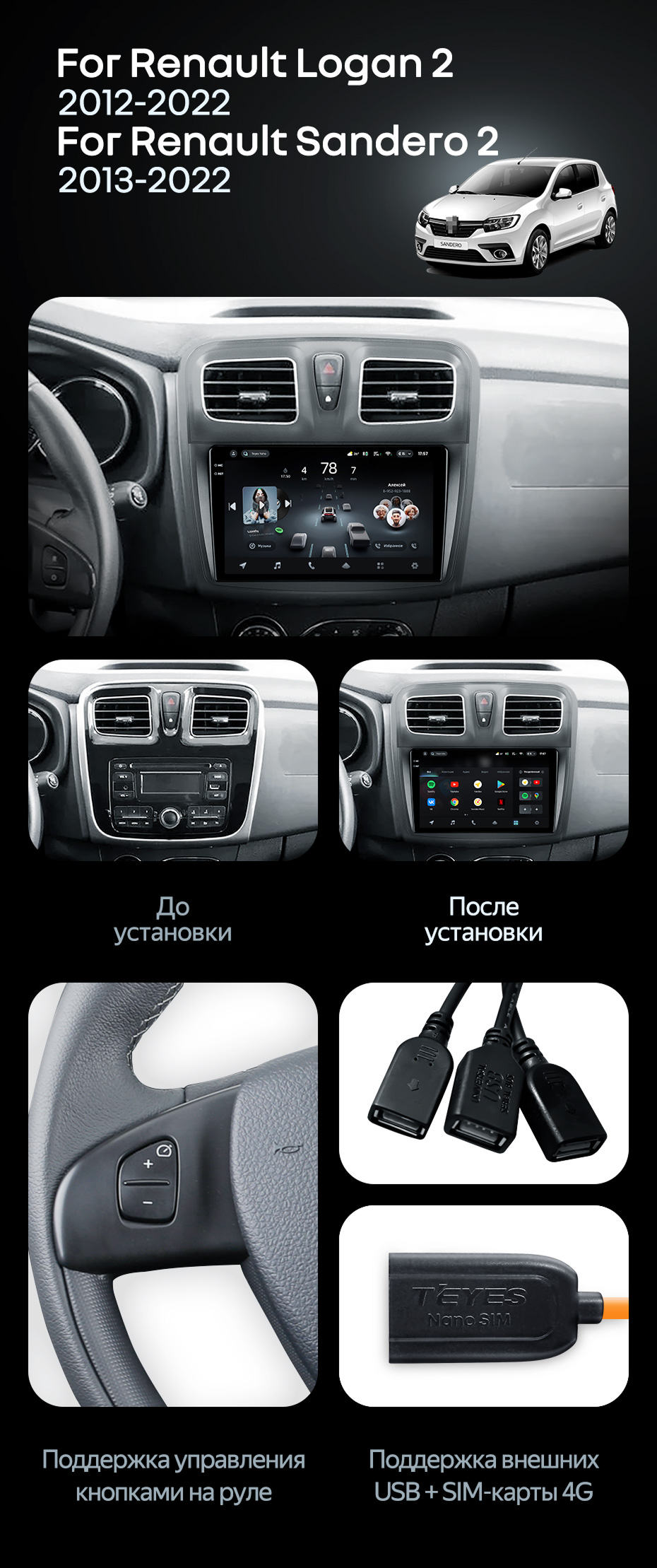 Штатная магнитола Teyes CC4 Pro 8/128 Renault Logan 2 (2012-2022) F2 - купить всего за 58 400 руб. в интернет-магазине в Мурманске Teyes.com.ru. ✓ Самый лучший выбор мультимедиа ✓ Лучшая замена штатному ГУ ✓ Тел. +7 (800) 775-31-74