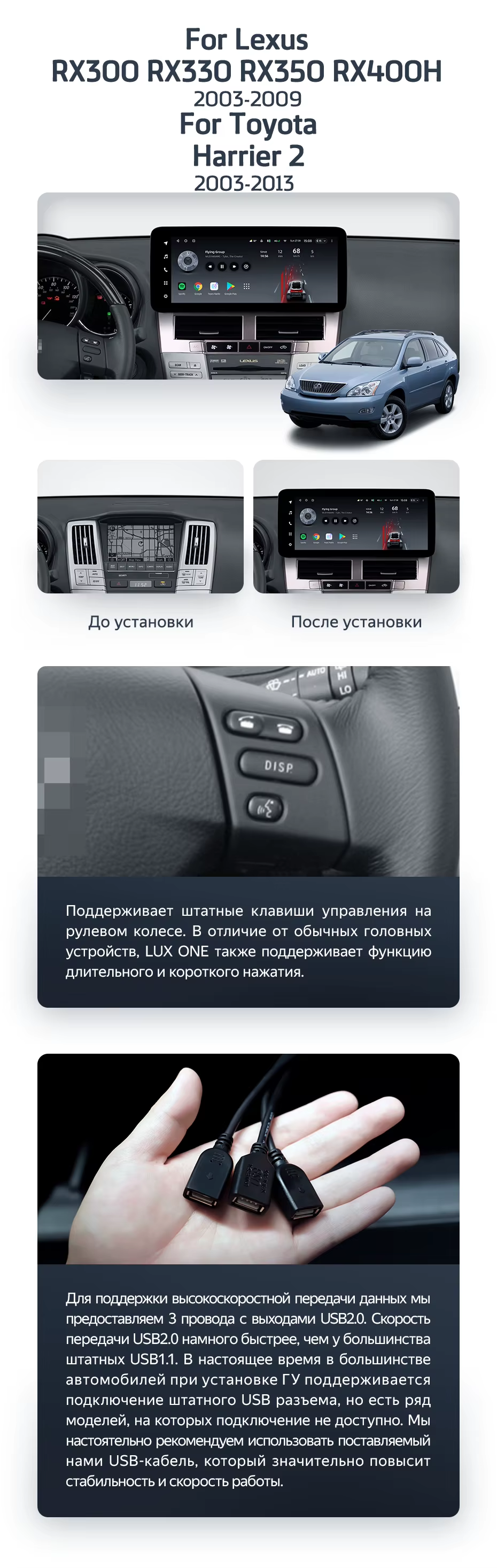 Штатная магнитола Teyes LUX ONE 4/64 Toyota Harrier XU30 (2003-2013) Тип-B - купить всего за 51 300 руб. в интернет-магазине в Мурманске Teyes.com.ru. ✓ Самый лучший выбор мультимедиа ✓ Лучшая замена штатному ГУ ✓ Тел. +7 (800) 775-31-74