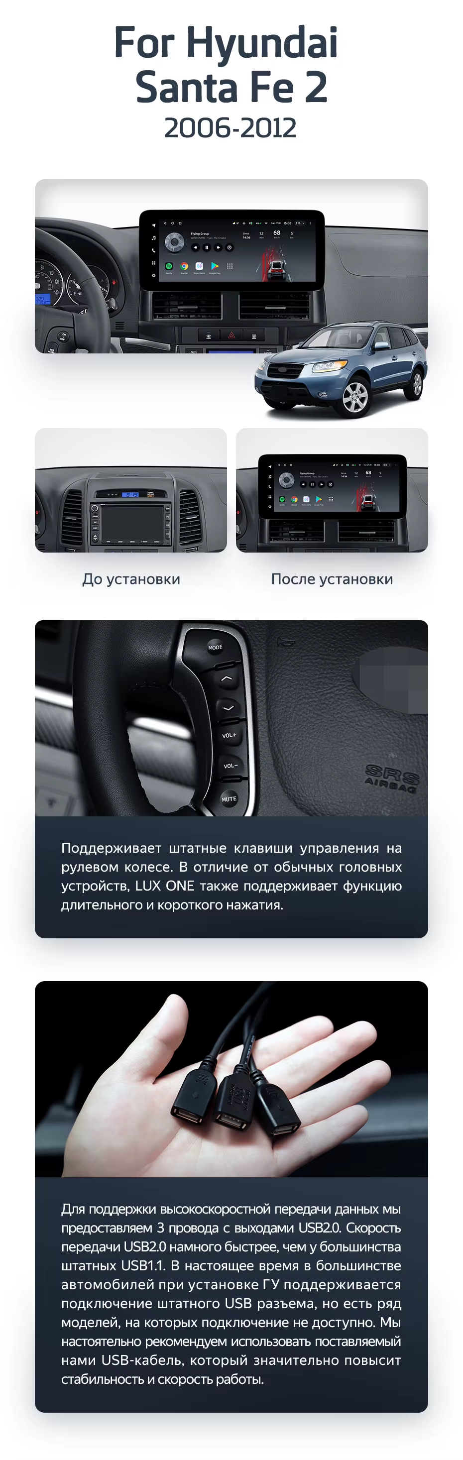 Штатная магнитола Teyes LUX ONE 6/128 Hyundai Santa Fe 2 (2006-2012) - купить всего за 49 700 руб. в интернет-магазине в Мурманске Teyes.com.ru. ✓ Самый лучший выбор мультимедиа ✓ Лучшая замена штатному ГУ ✓ Тел. +7 (800) 775-31-74
