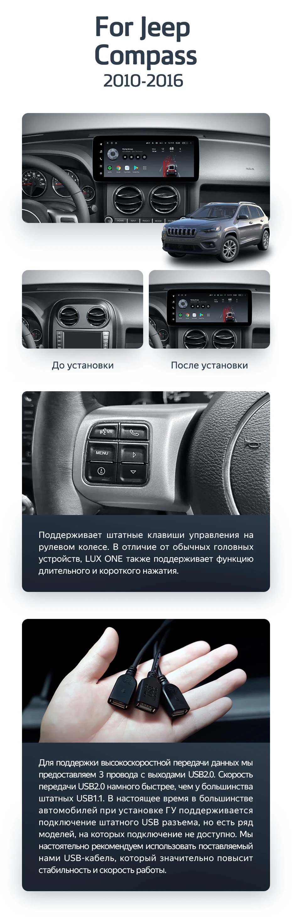 Штатная магнитола Teyes LUX ONE 6/128 Jeep Compass MK (2010-2016) - купить всего за 51 200 руб. в интернет-магазине в Мурманске Teyes.com.ru. ✓ Самый лучший выбор мультимедиа ✓ Лучшая замена штатному ГУ ✓ Тел. +7 (800) 775-31-74