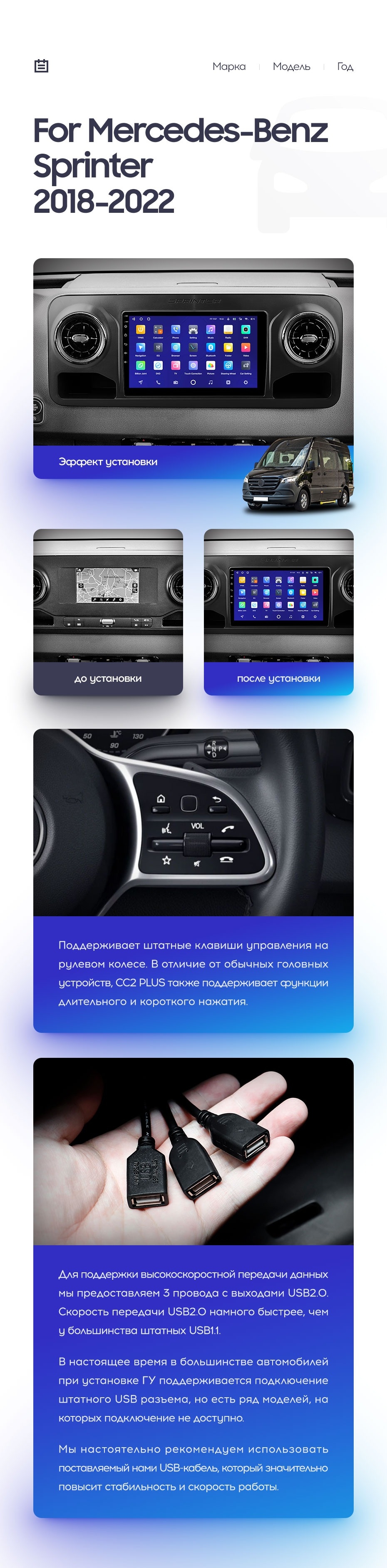Полный комплект установки магнитолы Teyes с рамкой и проводкой можно выбрать в каталоге штатных магнитол Mercedes-Benz Sprinter (2018-2022).