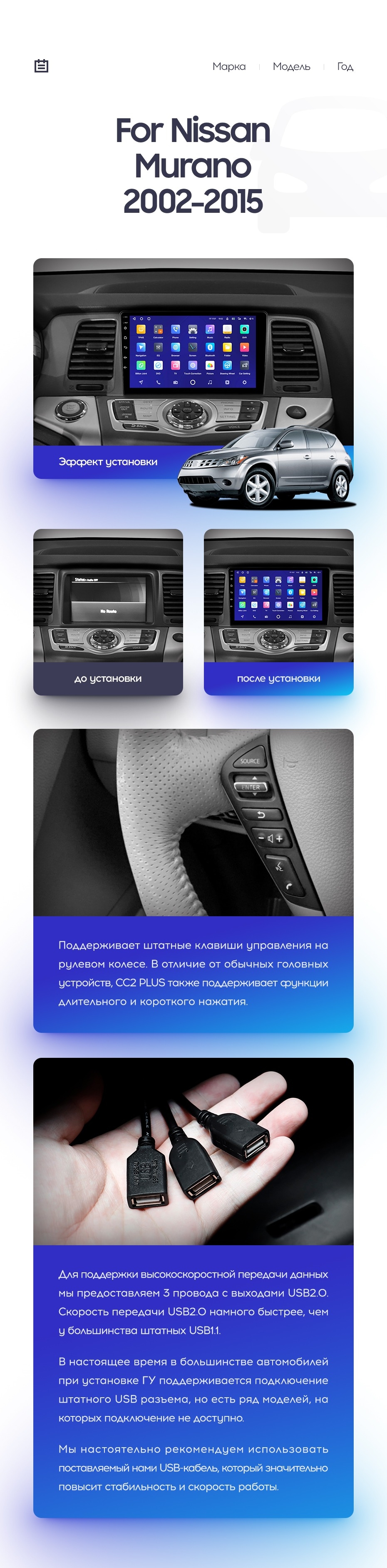 Полный комплект установки магнитолы Teyes с рамкой и проводкой можно выбрать в каталоге штатных магнитол Nissan Murano Z50 (2002-2015).