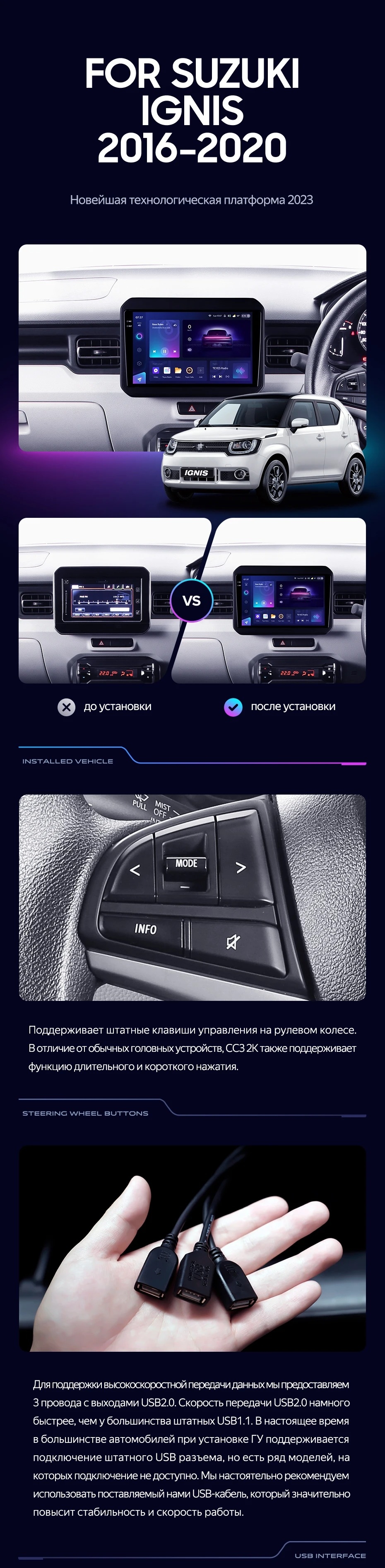 Полный комплект установки магнитолы Teyes с рамкой и проводкой можно выбрать в каталоге штатных магнитол Suzuki Ignis (2016-2020).