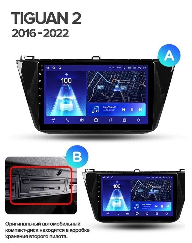 Полный комплект установки магнитолы Teyes с рамкой и проводкой можно выбрать в каталоге штатных магнитол Volkswagen Tiguan 2 (2016-2022).